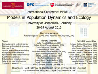 Organizers: Horst Malchow (U Osnabrück) & Sergei V. Petrovskii (U Leicester)