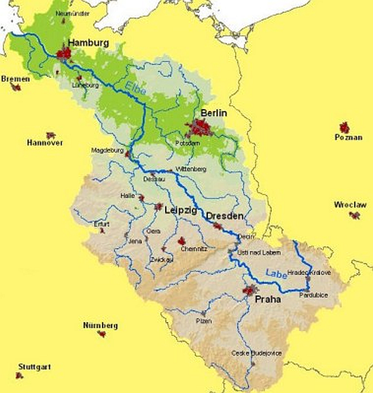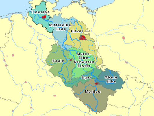 Die Elbe gehört mit einem Einzugsgebiet von etwa 148.000 km2 und einer Flusslänge von rund 1.100 km zu den größten Flüssen Mitteleuropas. Der größte Teil des Einzugsgebietes gehört mit etwa zwei Dritteln zu Deutschland; das restliche Drittel gehört - abgesehen von kleineren Flächen - zur Tschechischen Republik. Die wichtigsten deutschen Nebenflüsse sind die Schwarze Elster (5541 km2), die Mulde (7400 km2), die Saale (24079 km2) und die Havel (24096 km2).